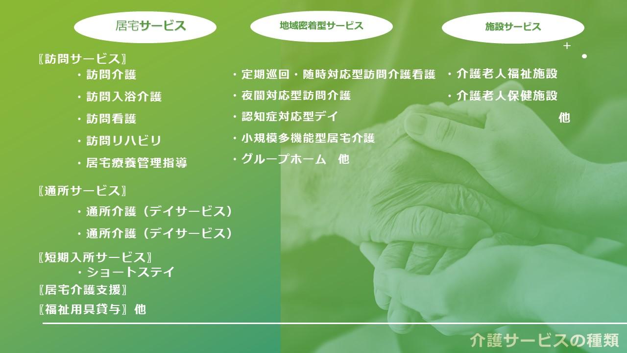 介護サービスとは、通常、介護保険制度に基づいたサービスのことを指し、対象は高齢者です。介護サー